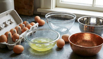 Warmer egg whites foam more. Copper bowls make stronger foam than glass because egg proteins react with copper ions.